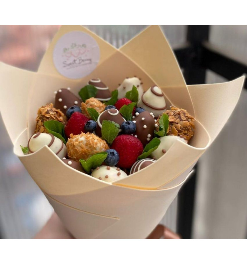 Купить Букет из клубники в бельгийском шоколаде «Бусинка» в Астане за 15 000 ₸ | интернет-магазин «Guls»